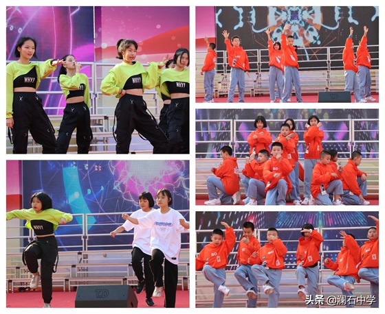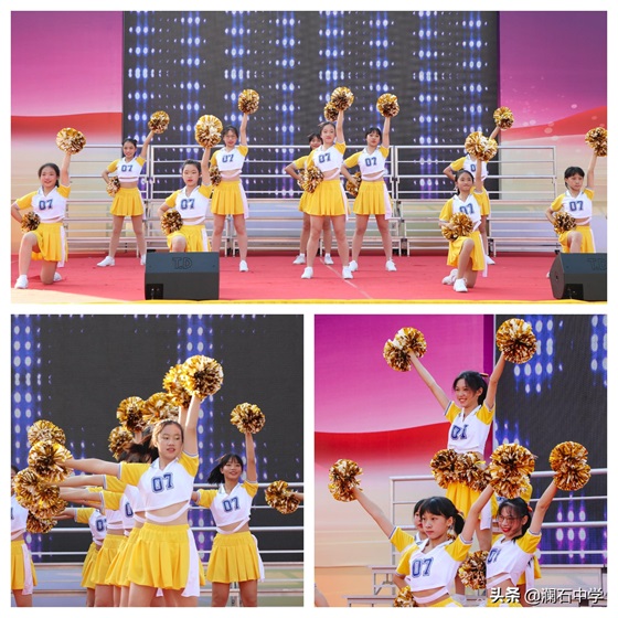 音乐变幻,音符跳跃,高低音起落,刚刚荣获“禅城区中小学生健美操啦啦操比赛”特等奖的澜石中学街舞队一展《发光吧,少年》的无限魅力;同获特等奖的啦啦操《最好的舞台》张扬着活力四射的青春,演绎着振奋人心的激情旋转、翻腾、自由摇摆,佛山市第三中学的动感舞姿散发出自信的光芒;澜中老师们将欢快舞姿化作奋进之态,昂首阔步,传承澜中理想之光,精神之魂。