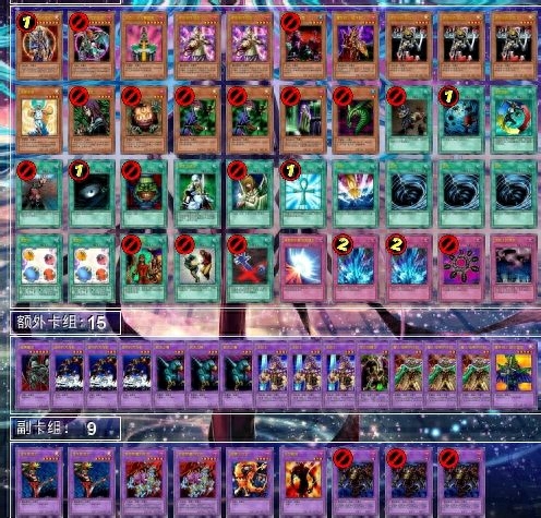 这套卡组也不必多说,光之护封剑,神圣防护罩,激流葬,大风暴,旋风都能有效的限制或除去对方的怪兽或者魔法陷阱卡。再搭配上千眼纳祭神可以说不论是防守还是进攻都绰绰有余。