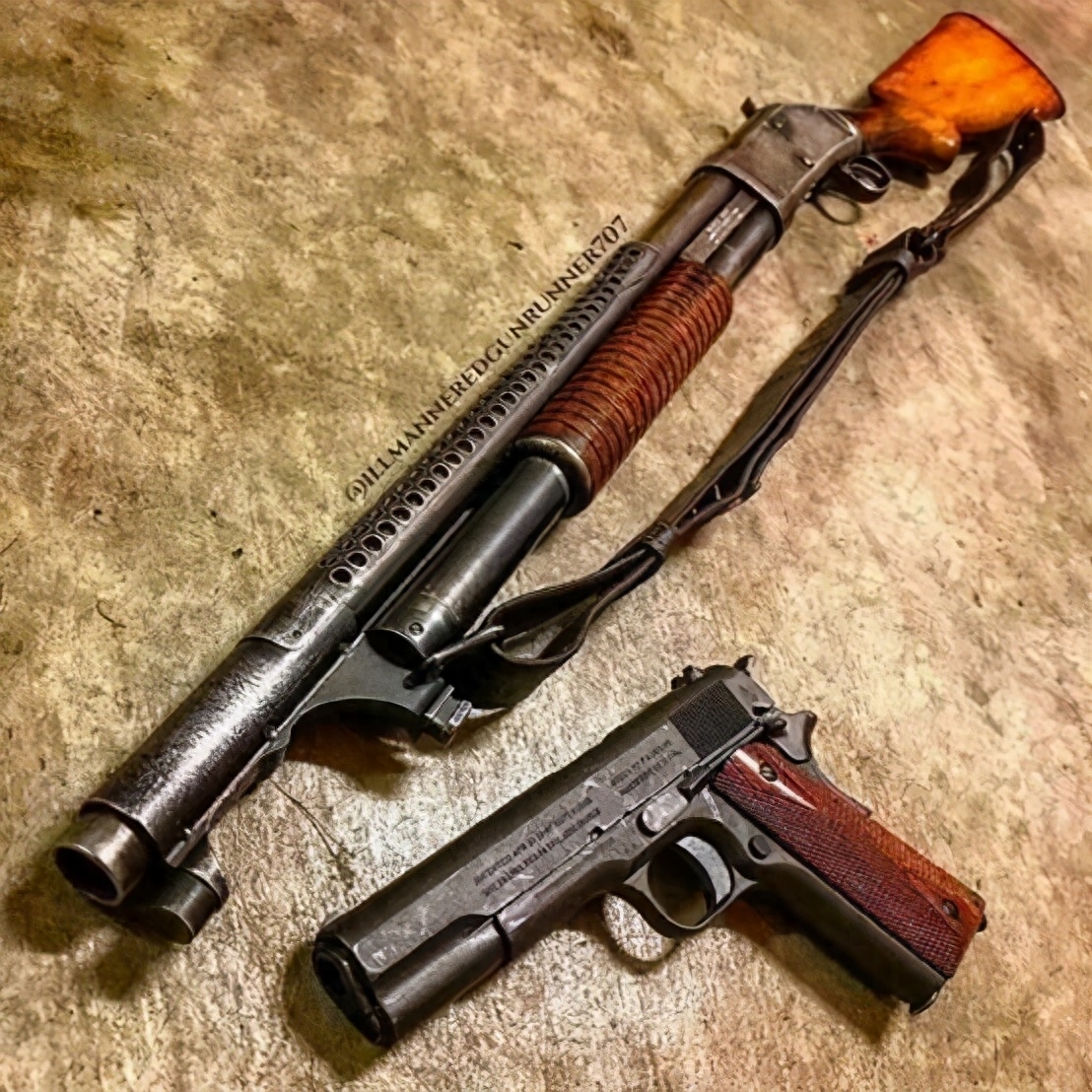 温彻斯特97式霰弹枪与M1911手枪