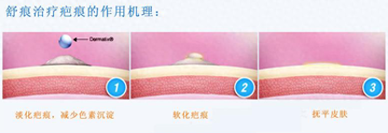 1、被证明有效平复,软化及淡化疤痕