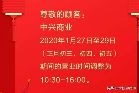1月27日(年初三)营业时间调整为10:00--15:00营业时间如有调整将另行通知!