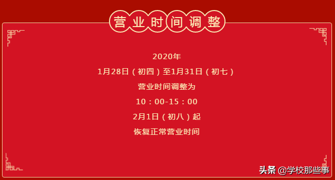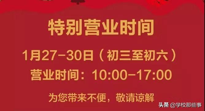 2020年1月27日(初三)至1月30日(初六)营业时间为10:00-16:00
