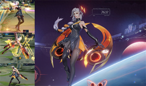 这款皮肤和兰陵王是情侣皮,造型和颜值都非常高,以至于有人说情侣皮的脸都是最好看的。在游戏中特效是以淡蓝色为主,手感非常不错,轻剑很丝滑,重剑的机甲打击感硬朗但不笨重,如果能开极致画质的话,还能看到,蓝色花瓣飘舞,能算得上S级。