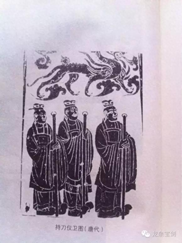 唐仪刀为军刀四制之一,盖古班剑之类,晋宋已来谓之御刀,后魏曰长刀,皆施龙凤环。至隋,谓之仪刀,装以金银,羽仪所执。
