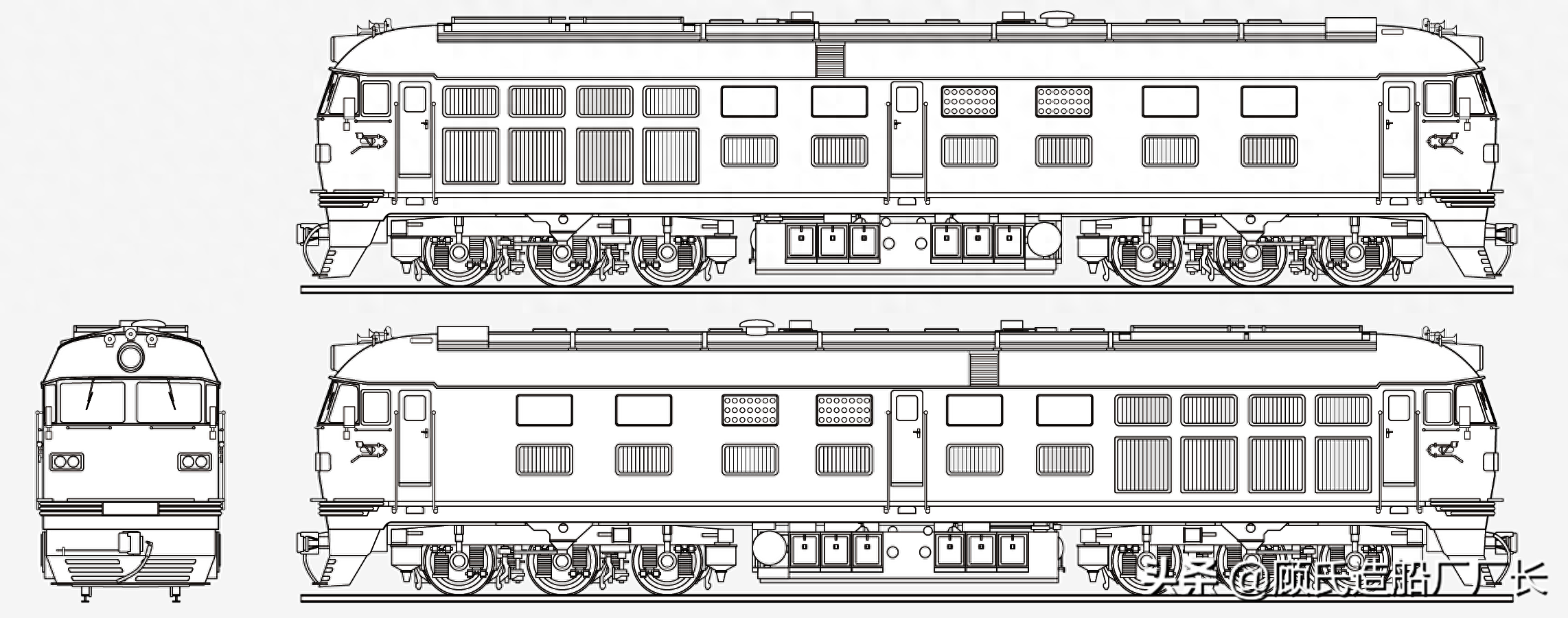 本厂长绘制的ND2型内燃机车和东风4B型内燃机车等比例二视图
