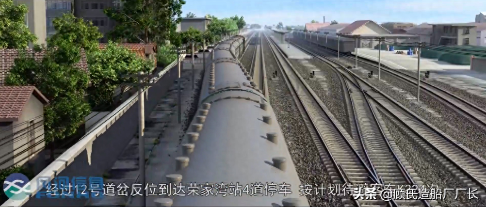 场景再现,通过12号道岔进入荣家湾站4道停车的818次列车