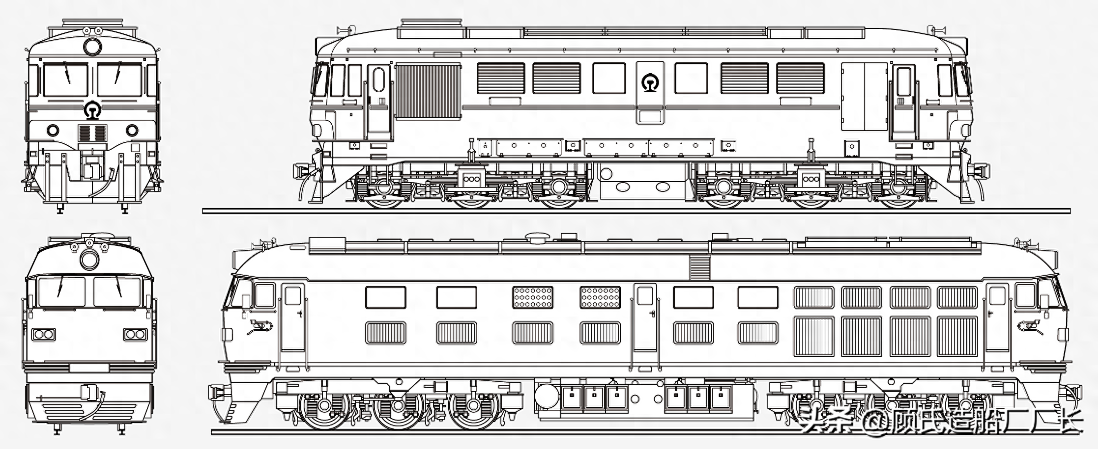 本厂长绘制的东风4B型内燃机车素体二视图