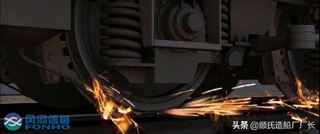 非常制动状态下的车轮和刹车片发生剧烈摩擦并迸发火星