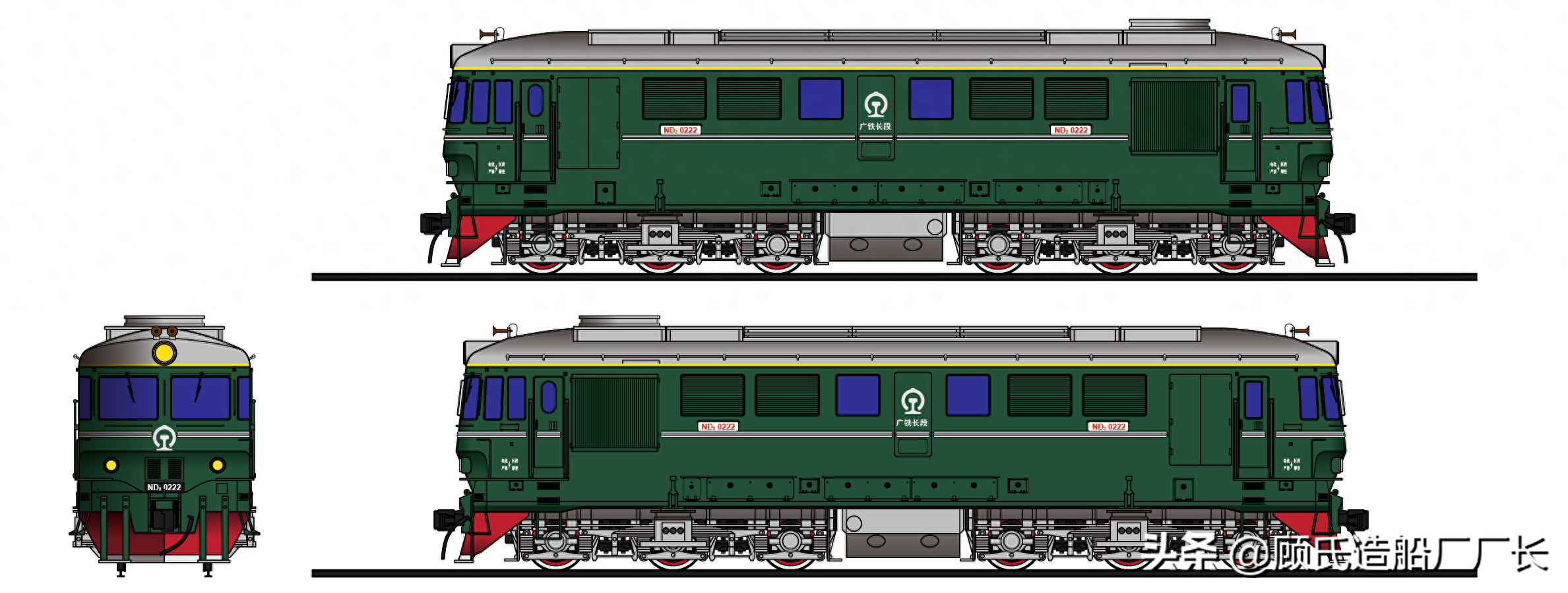 本厂长绘制的ND2-0222号内燃机车二视图