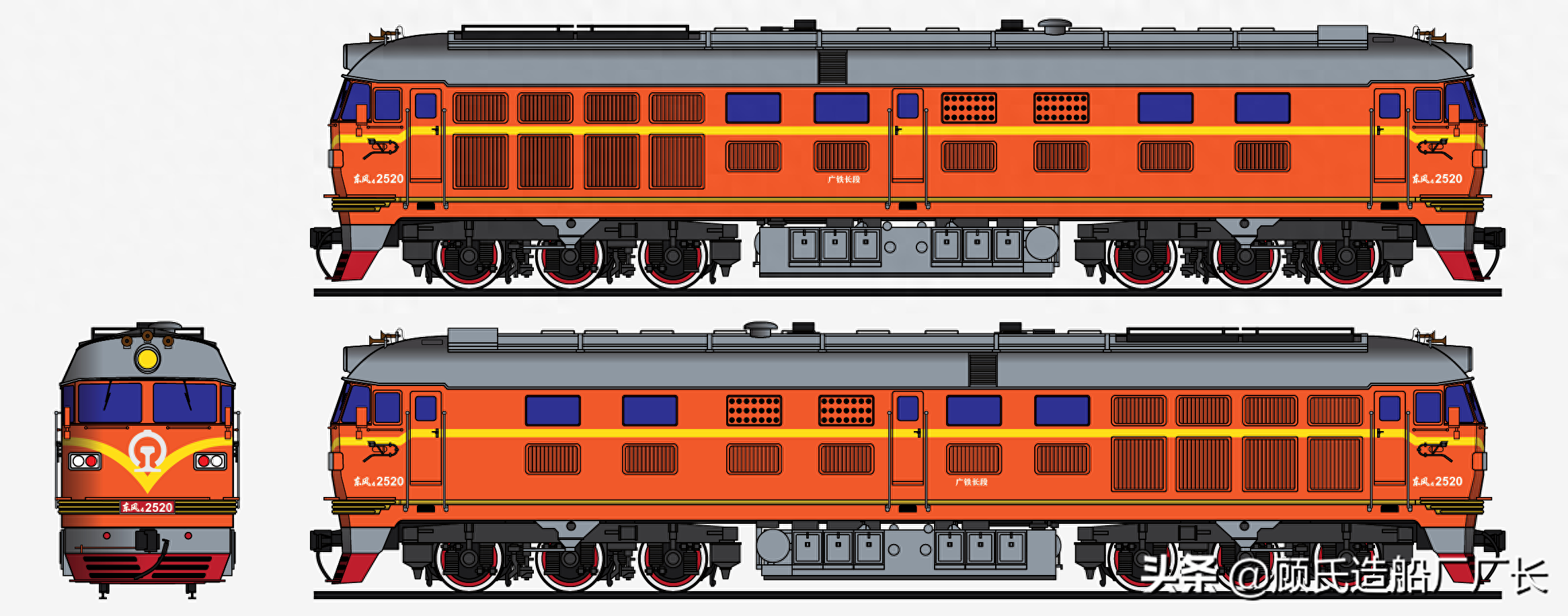 本厂长绘制的东风4-2520号内燃机车二视图