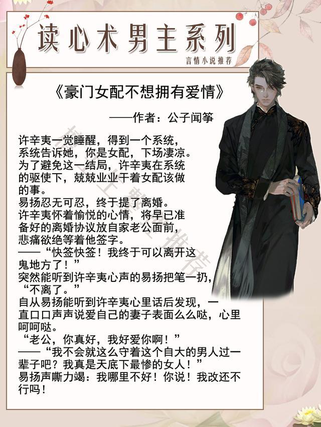 亲们,今天来推一系列读心术男主的言情小说吧!