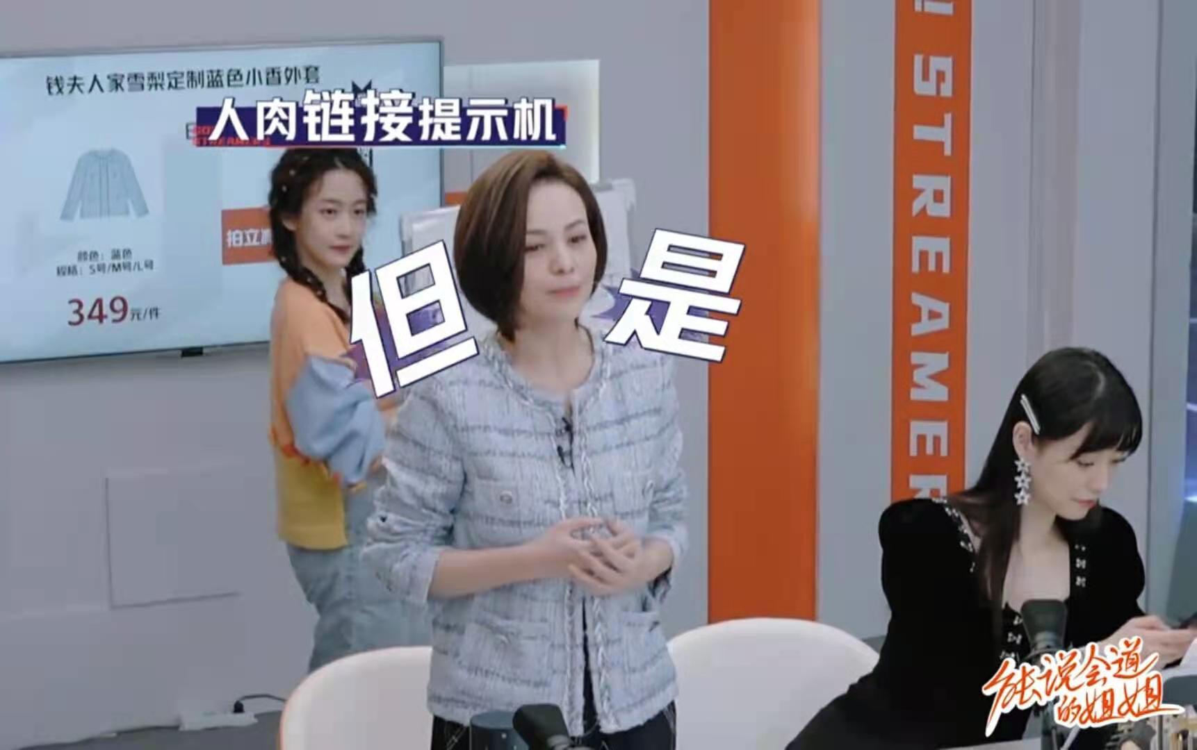 直播中,王琳老师在售卖蓝色小香外套的时候,刘美含化身行走的链接工具人。她手上拿了个小黑板,在王琳背后做人肉链接提示机,让直播间的观众们知道王琳正在售卖的是18号链接,方便观众迅速找到商品。