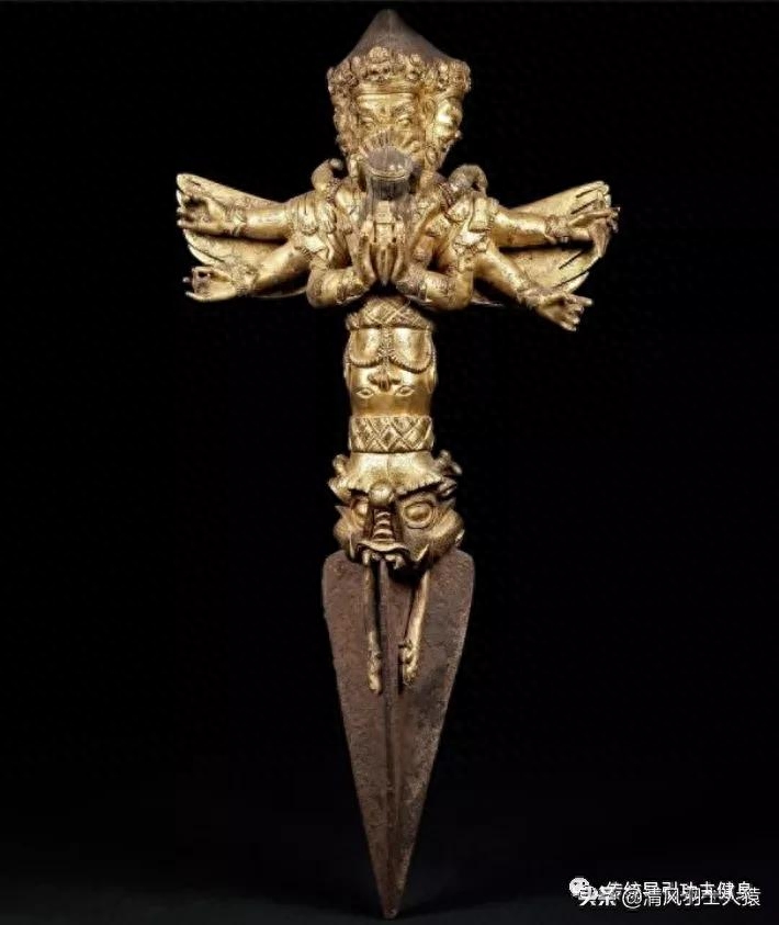 如上图,双手合十的动作应该取自这个法相,曾经我对此也有过疑问?以为我学的这版本从这个法相演化的,在偶然间,发现个图,开阔了下思路,而且降魔杵不只上图中像鞭锏兵器的样式。在有些教派中,也叫金刚杵,金刚撅等等,如下图: