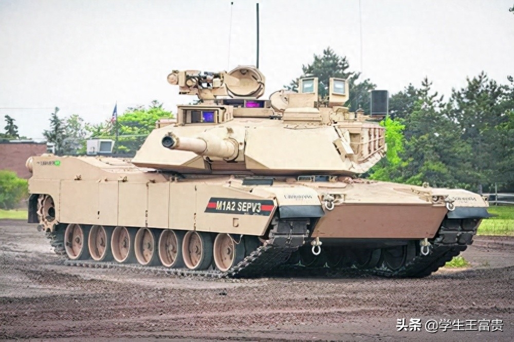 美国M1A2SEP主战坦克,是“艾布拉姆斯”主战坦克的最新型和最先进的型号,装备了二代热成像系统、车长独立热成像仪、真彩平面显示仪、数字化地形图、热控制系统和最新的数字化指挥、控制、通信装备。美国陆军现阶段最终的目标是将所有的M1系列坦克改进成为M1A2SEP型。 SEP是系统组件的英文缩写,涉及观瞄、火控、武器、动力、通信、防护和车辆管理等多个方面。在火力方面在火炮防盾上加装了1挺12.7毫米机枪,配备M829E3加强型穿甲弹,主要武器为120毫米滑膛炮,最大速度68公里/小时。
