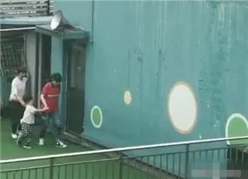 孩子嚎啕大哭,观察一会儿发现老师不在试图离开,被小门里的一名男子拦住,之后红衣幼师和另一名白衣女子被拽回,继续罚站。