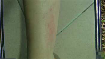 9月16日,妻子接女儿放学时,发现她脸上、手上、脚上都有明显红肿。女儿的同学旁边说,“豆豆今天被打的很惨”。