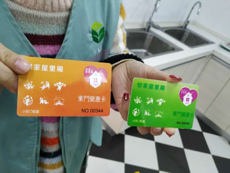 居民来这里洗澡,需要满足哪些条件?公共澡堂是否收费呢?小东门街道“邻家屋里厢”负责人高佳珍告诉周到君,这个服务站主要为附近的中华、西姚居民区提供服务,这两个居民区的居民可以到居委会实名办理乐惠卡。乐惠卡有两种颜色,橙色卡专供80岁以上高龄老人使用,由街道为老人充值积分,用完后自动续上。绿色卡供一般居民使用,居民需要参加社区志愿服务或者社区活动来获得积分,每小时计0.5分。在公共澡堂洗一次澡要用0.35积分,不收现金。