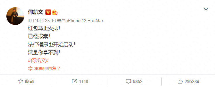1月19日,何凯文发表微博回应称已经报案,启动法律程序。