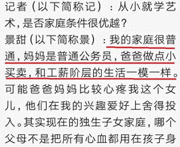 景甜曾经在采访中说,妈妈是普通公务员,爸爸做小买卖