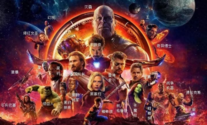以上6位是初代漫威超级英雄,第一批复仇者联盟成员,在复联三中,此6位成员都没有牺牲,也算是一种致敬了。