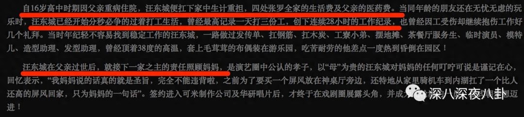 不过汪东城确实和其他三人不太一样,家庭条件比较差,从小打工,父亲还生病离世