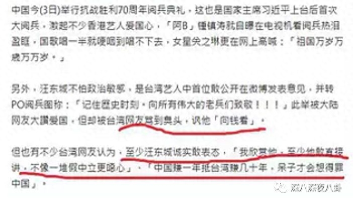汪东城本人还是很爱国的,公开向阅兵致敬,因为亲中他还被有些湾湾人骂了