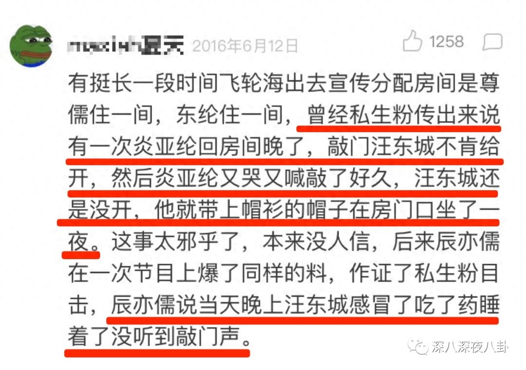 但是有次有私生饭说看见【半夜炎亚纶被锁在房间门外不让进】,还【大喊大哭】!!!这时候和他住一起的是汪东城诶