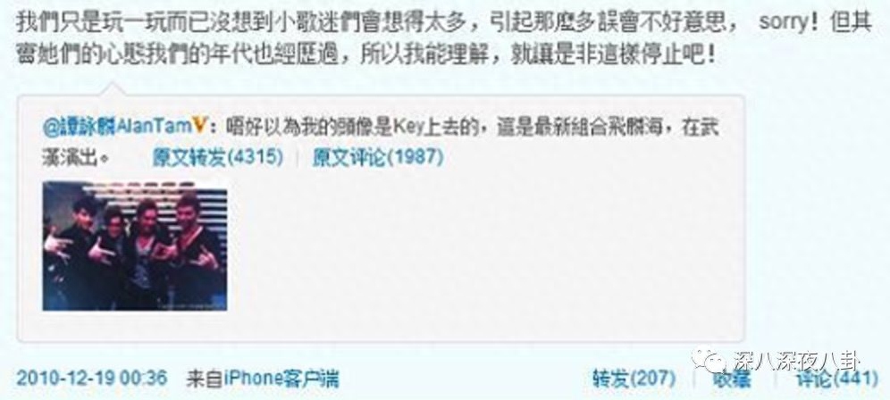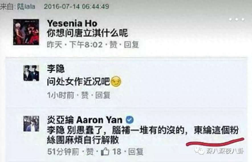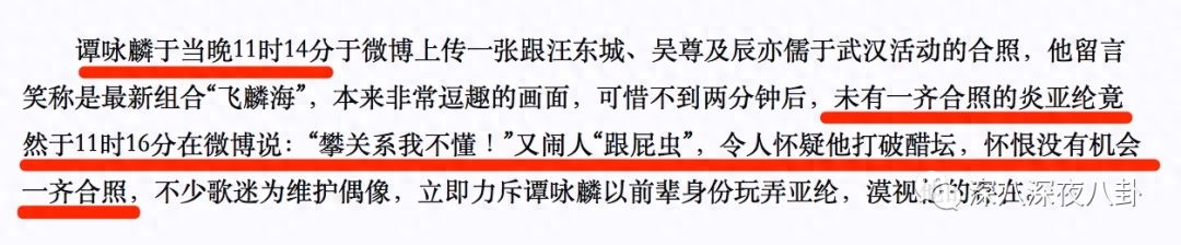 当时跟谭咏麟的“飞鳞海”合照闹得还蛮大,谭咏麟发了一张没有炎亚纶的合照称“飞麟海”