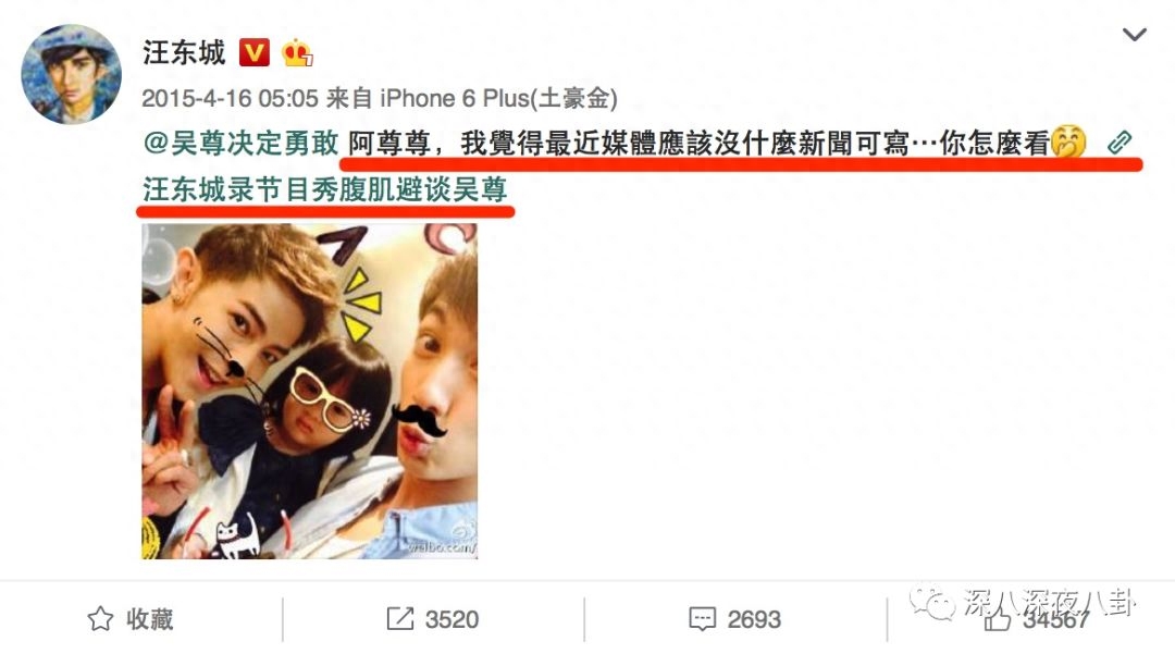 汪东城也有直接在微博上晒和吴尊合照,呛媒体说他们不合