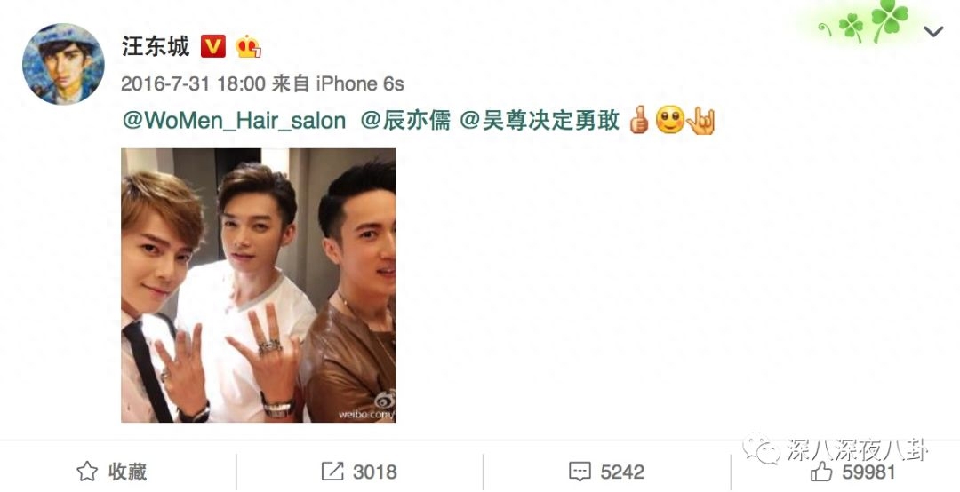 昨天汪东城的微博一石激起千层浪有没有!这是要公开的节奏?