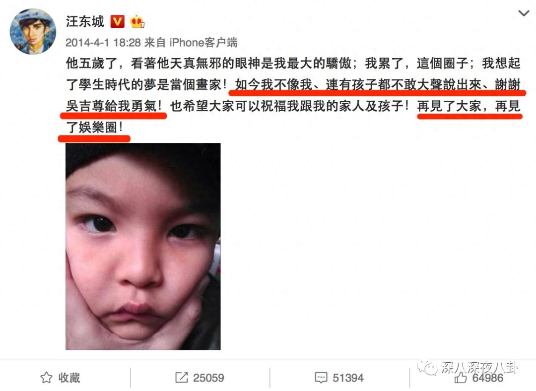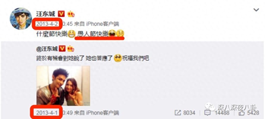 其实汪东城13年就有发过类似的微博,只不过当时他解释是“愚人节”,大家也没当回事
