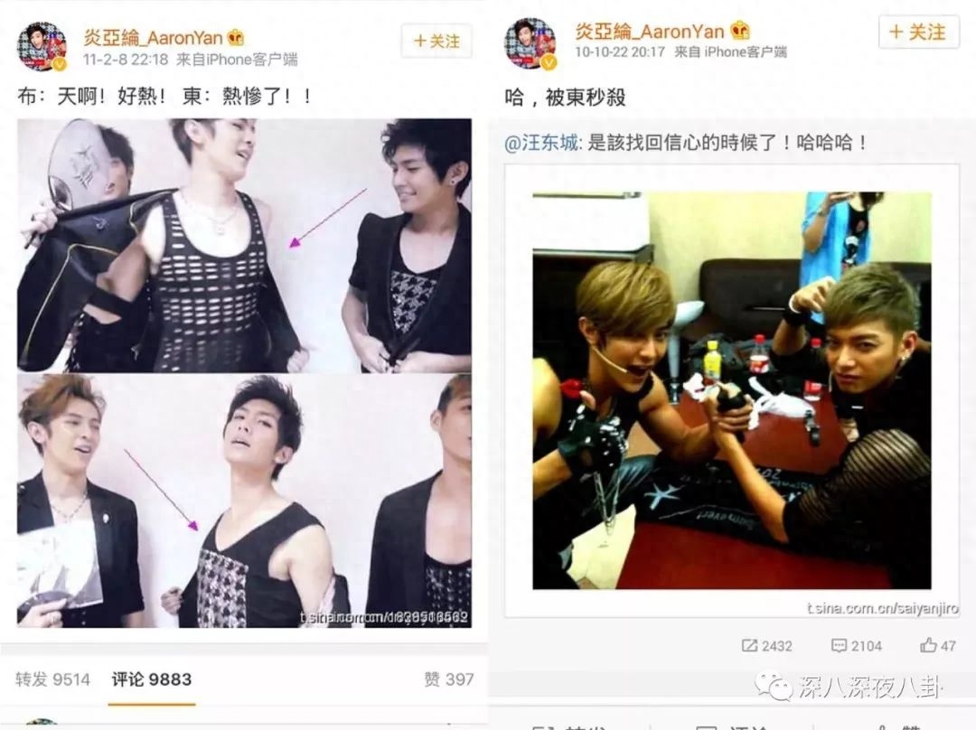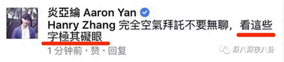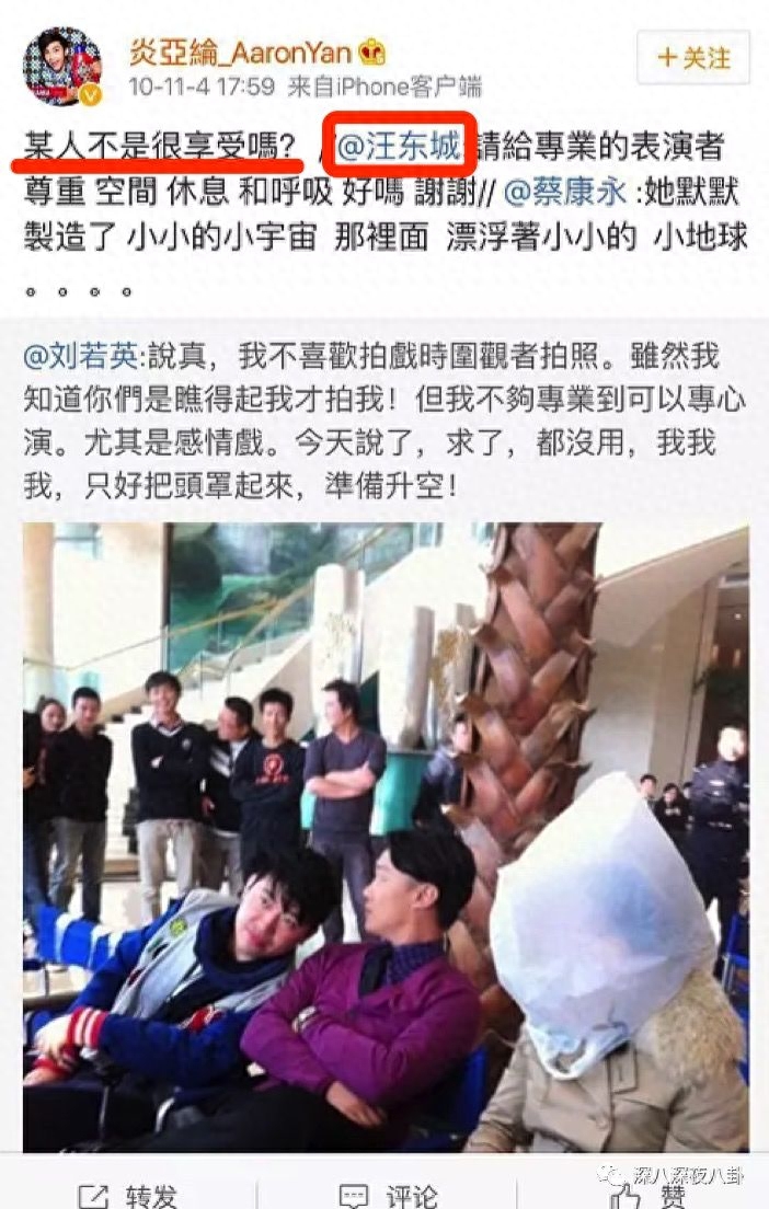 没想到炎亚纶马上发了一条微博说【攀关系我不懂】,还带了汪东城的tag,粉丝一看偶像不开心,当然要冲上去撕啊
