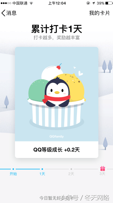 打卡的奖励是:QQ等级成长+0.2天