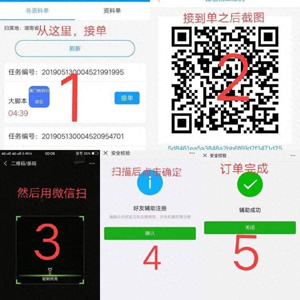 这是一款帮助别人微信扫码辅助来赚取佣金的平台,0投资项目,注册即可接单赚钱,10秒钟就能完成任务,适合所有人做,只要有微信就可以赚一笔钱,在平台每天都会有大量任务需求!