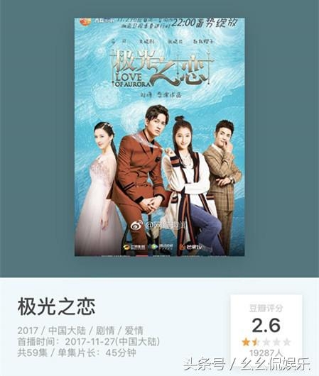 关晓彤和马克主演的《极光之恋》更是破新低只有2.6评分。这部剧有多尬我就不多说了...