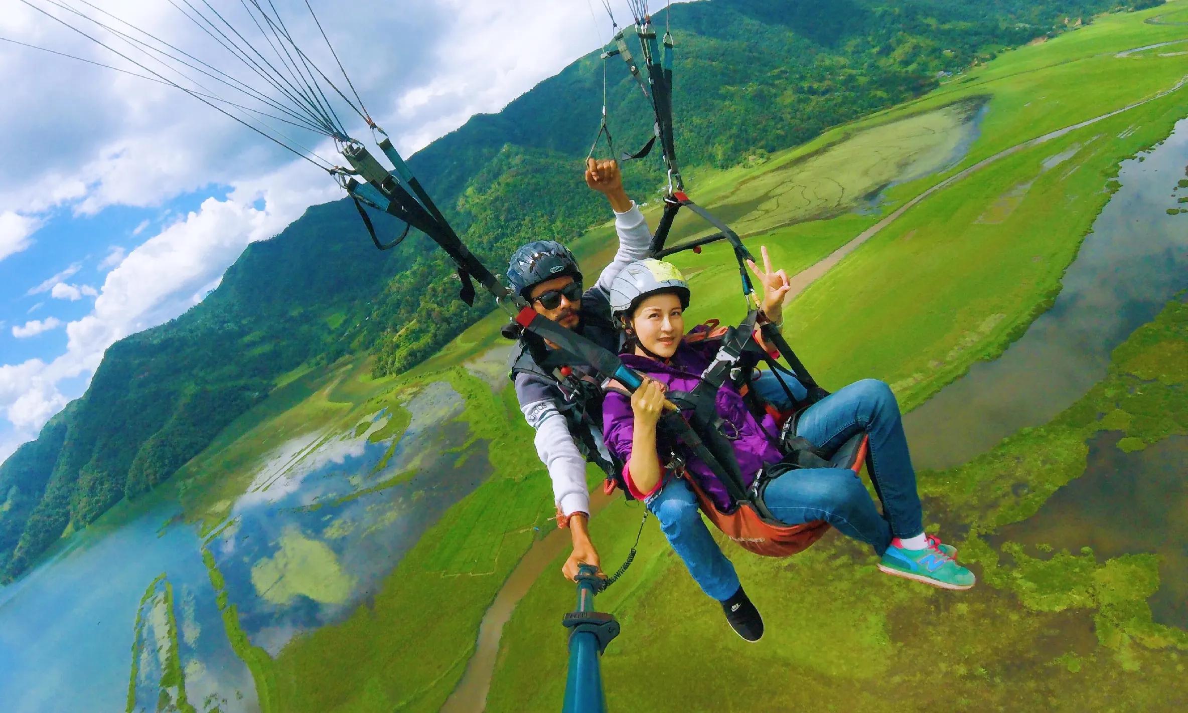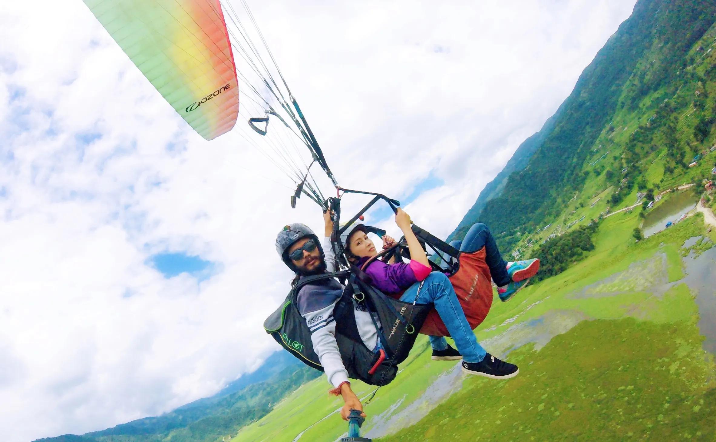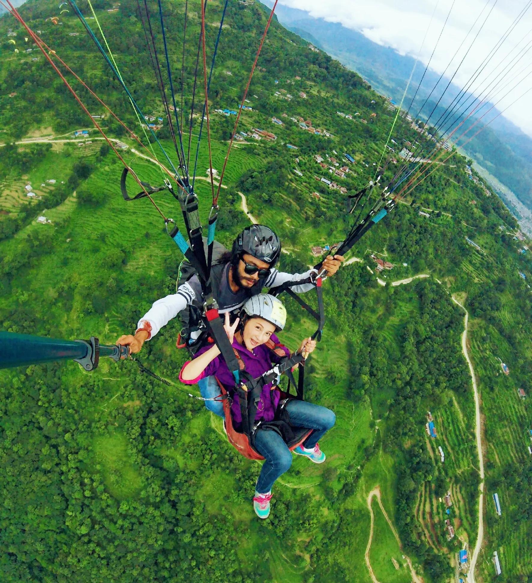 想想都后怕,因为我在国外旅行时也飞过滑翔伞。两年前,我是在尼泊尔的博卡拉玩的滑翔伞,其实滑翔伞真的存在安全隐患的,起飞前根本没有任何训练,也没有告知发生紧急情况时该如何应对,直接就和教练一起去飞了,而且在我飞的前两天该国该地区刚发生过滑翔伞坠亡事件(是尼泊尔当地游客)。所以那天起飞前,我就已经十分紧张了,我本来就是有恐高症的,但我为了克服恐高症,为了征服高难度,还是决定要大胆尝试。当时所有游客都还签了"生死状",上面用英文写着:"成年人必须为自己的任何行为负责,出现不抗力或自身原因导致的伤亡事件,本公司概不负责。"我哆哆嗦嗦战战兢兢地签下了那份"生死状",心里不断地祈祷着。