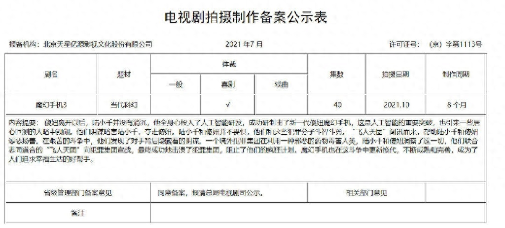 不过选角受各方因素影响,最终我们也只能坐等剧方官宣演员阵容。而从备案来看,《魔幻手机3》预计10月份开机,所以对于这部新系列大家会期待吗?